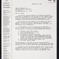 Tags: American Psychiatric Association~ Invitations~ Popper, Charles, 1946-~ Watson, James D., 1928-