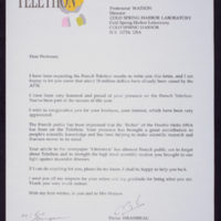 Tags: Association francaise contre les myopathies~ Barataud, Bernard~ Correspondence~ Telethon~ Watson, James D., 1928-