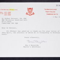 Tags: Atiyah, Michael Francis, 1929-~ Brenner, Sydney~ Reynolds, J.~ Thank-you notes