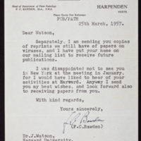 Tags: Bawden, F. C. (Frederick Charles)~ Correspondence~ Watson, James D., 1928-