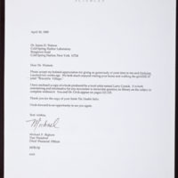 Tags: Bigham, Michael F.~ Books~ Lawford, Nicholas~ Thank-you notes~ Watson, James D., 1928-