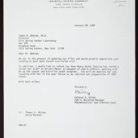 Tags: Bloom, Kathryn R.~ Bristol-Myers Company~ Correspondence~ Watson, James D., 1928-