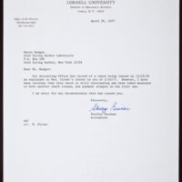 Tags: Breiner, Shelley~ Cornell University~ Correspondence~ Hedges, Maria~ Watson, James D., 1928-
