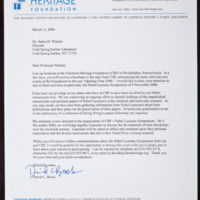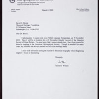 Tags: Brock, David C.~ Chemical Heritage Foundation~ Correspondence~ Watson, James D., 1928-