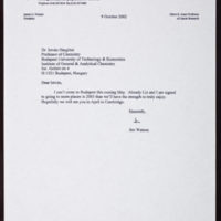 Tags: Budapest (Hungary)~ Correspondence~ Hargittai, Istvan~ Travel~ Watson, James D., 1928-