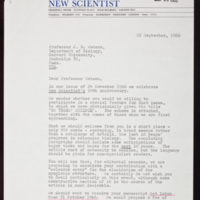 Tags: Calder, Nigel, 1931-~ Invitations~ New Scientist~ Queries (Authorship)~ Watson, James D., 1928-