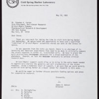 Tags: Bristol-Myers Company~ Carter, Stephen K.~ Research Support as Topic~ Thank-you notes~ Watson, James D., 1928-