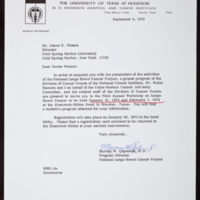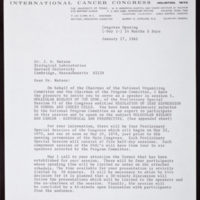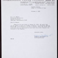 Tags: Copeland, Murray M.~ International Cancer Congress~ Invitations~ Watson, James D., 1928-