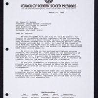 Tags: Correspondence~ Council of Scientific Society Presidents~ Speeches, addresses, etc.~ Watson, James D., 1928-