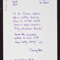 Tags: Correspondence~ Dick Cavett show (Television program)~ Hale, Tenny~ Watson, James D., 1928-