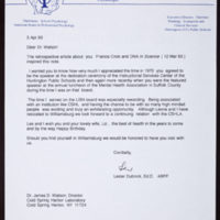 Tags: Dubnick, Lester~ Mental Health Association in Suffolk County, Inc.~ Thank-you notes~ Watson, James D., 1928-