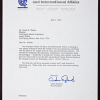 Tags: Carnegie Council on Ethics & International Affairs~ Correspondence~ England, Audna~ Watson, James D., 1928-