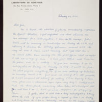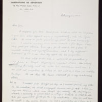 Tags: Correspondence~ Ephrussi-Taylor, Harriett~ Research~ Watson, James D., 1928-