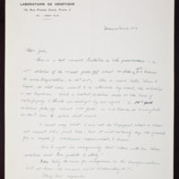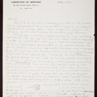 Tags: Correspondence~ Ephrussi-Taylor, Harriett~ Research~ Watson, James D., 1928-