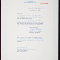 Tags: Anniversaries and Special Events~ Correspondence~ Farber, Sidney~ Watson, Elizabeth L.~ Watson, James D., 1928-