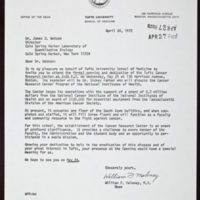 Tags: Correspondence~ Farber, Sidney~ Hiatt, Howard H.~ Mott, Stewart R.~ Watson, James D., 1928-