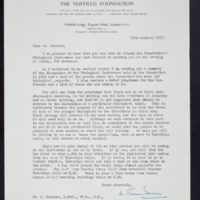 Tags: Brenner, Sydney~ Congresses as Topic~ Farber-Brown, Leslie~ Invitations~ Nuffield Foundation