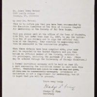 Tags: Finn, Gladys L.~ Invitations~ Membership~ Phi Beta Kappa~ University of Chicago~ Watson, James D., 1928-