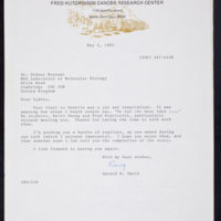 Tags: Brenner, Sydney~ Fred Hutchinson Cancer Research Center~ Smith, Gerald R.~ Thank-you notes~ Travel