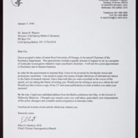 Tags: Correspondence~ Gershon, Elliot S., 1940-~ Watson, James D., 1928-