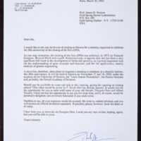 Tags: Banbury Center~ Gros, Francois, 1925-~ Minkowski, Marianne~ Thank-you notes~ Watson, James D., 1928-