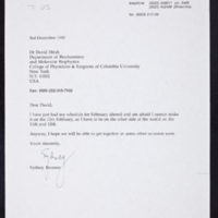 Tags: Brenner, Sydney~ Columbia University. College of Physicians and Surgeons~ Hirsh, David I.~ Invitations~ Travel