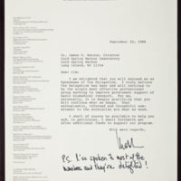 Tags: Correspondence~ Hoagland, Mahlon B.~ Human Genome Project~ Occupations~ Watson, James D., 1928-