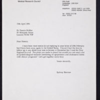 Tags: Blumgart, Leslie H.~ Brenner, Sydney~ Correspondence as Topic~ Krikler, Dennis