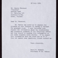 Tags: Correspondence~ Cramer, Friedrich, 1923-~ Meadors, Gayle M.~ Watson, James D., 1928-