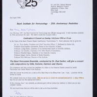 Tags: Anniversaries and Special Events~ Basel Institute for Immunology~ Brenner, Sydney~ Invitations~ Melchers, F. (Fritz), 1936-