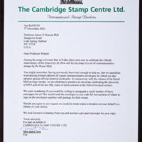 Tags: Cambridge Stamp Centre~ Correspondence~ New, Janet~ Watson, James D., 1928-