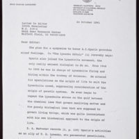 Tags: Congresses as Topic~ Correspondence~ International Society for the Study of the Origin of Life and Astrobiology~ Jukes, Thomas H. (Thomas Hughes), 1906-1999~ Oparin, Aleksandr Ivanovich, 1894-1980