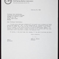 Tags: Anniversaries and Special Events~ Cold Spring Harbor Laboratory~ Cold Spring Harbor Symposium on Quantitative Biology~ Invitations~ Ovchinnikov, Yuri A., 1934-~ Watson, James D., 1928-