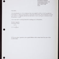 Tags: Pettersson, Ulf~ Thank-you notes~ Watson, James D., 1928-