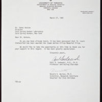 Tags: Correspondence~ Killam Prizes~ Siminovitch, Louis~ Watson, James D., 1928-