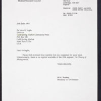 Tags: Brenner, Sydney~ Cambridge Society for the Application of Research~ Correspondence as Topic~ Oswald, Gordon~ Starkey, Mary-Ann
