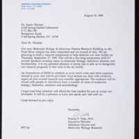 Tags: American Cyanamid Company~ Invitations~ Speeches, addresses, etc.~ Tally, Francis P.~ Watson, James D., 1928-