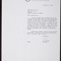 Tags: China~ Fudan University~ Invitations~ Tan, C. C.~ Travel~ Watson, James D., 1928-