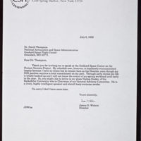 Tags: Invitations~ Speeches, addresses, etc.~ Thompson, David J.~ United States. National Aeronautics and Space Administration~ Watson, James D., 1928-