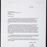 Tags: Correspondence~ Speeches, addresses, etc.~ Trinity College (Dublin, Ireland)~ Watson, James D., 1928-
