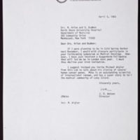 Tags: Arlen, M.~ Invitations~ North Shore University Hospital~ Watson, James D., 1928-~ Wigler, Michael, 1947-