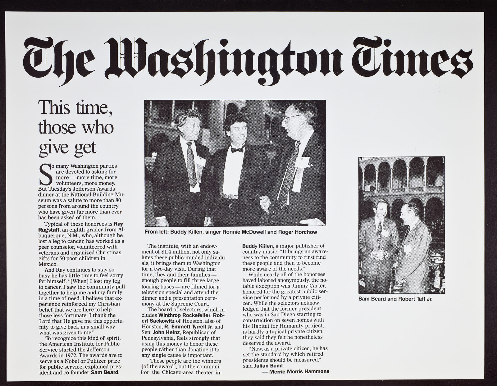 Copy of newspaper article from The Washington Post "This time, thosewho give get"
