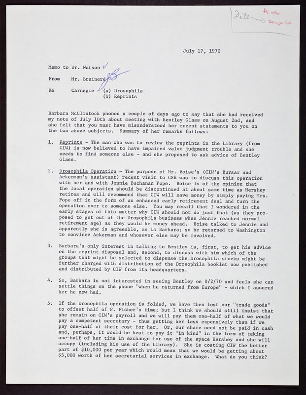 Item JDW/2/2/292: Carnegie Institute of Washington (1967-1971)