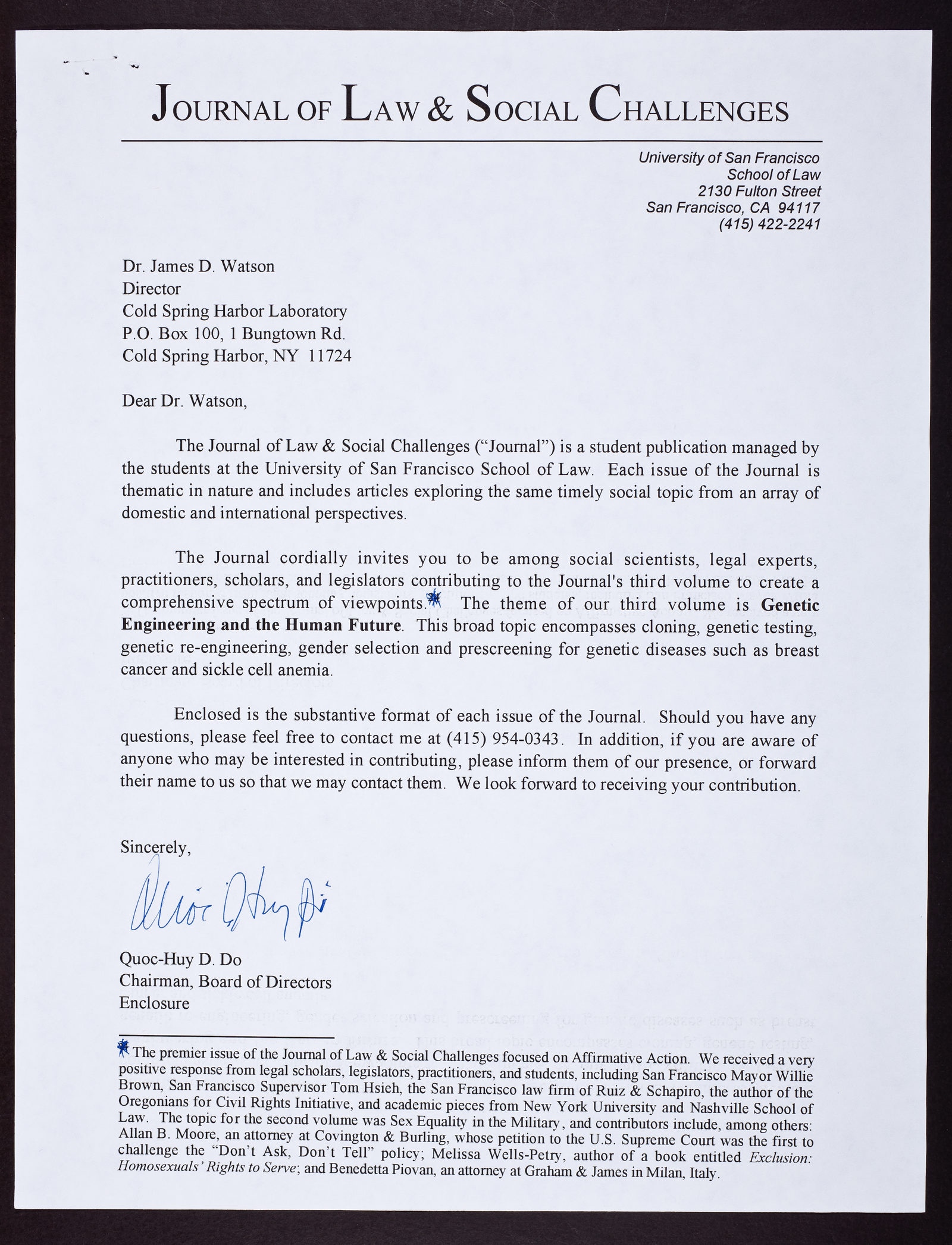 Letter from Quoc-Huy D. Do to James D. Watson