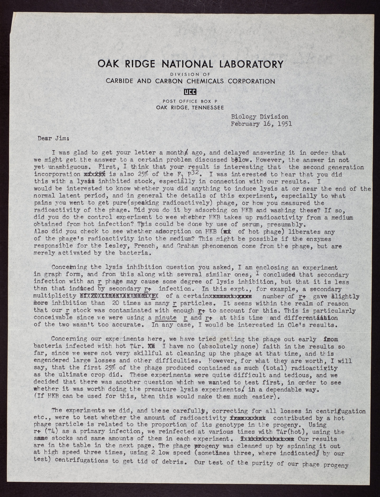 Letter from Gus Doermann to James D. Watson