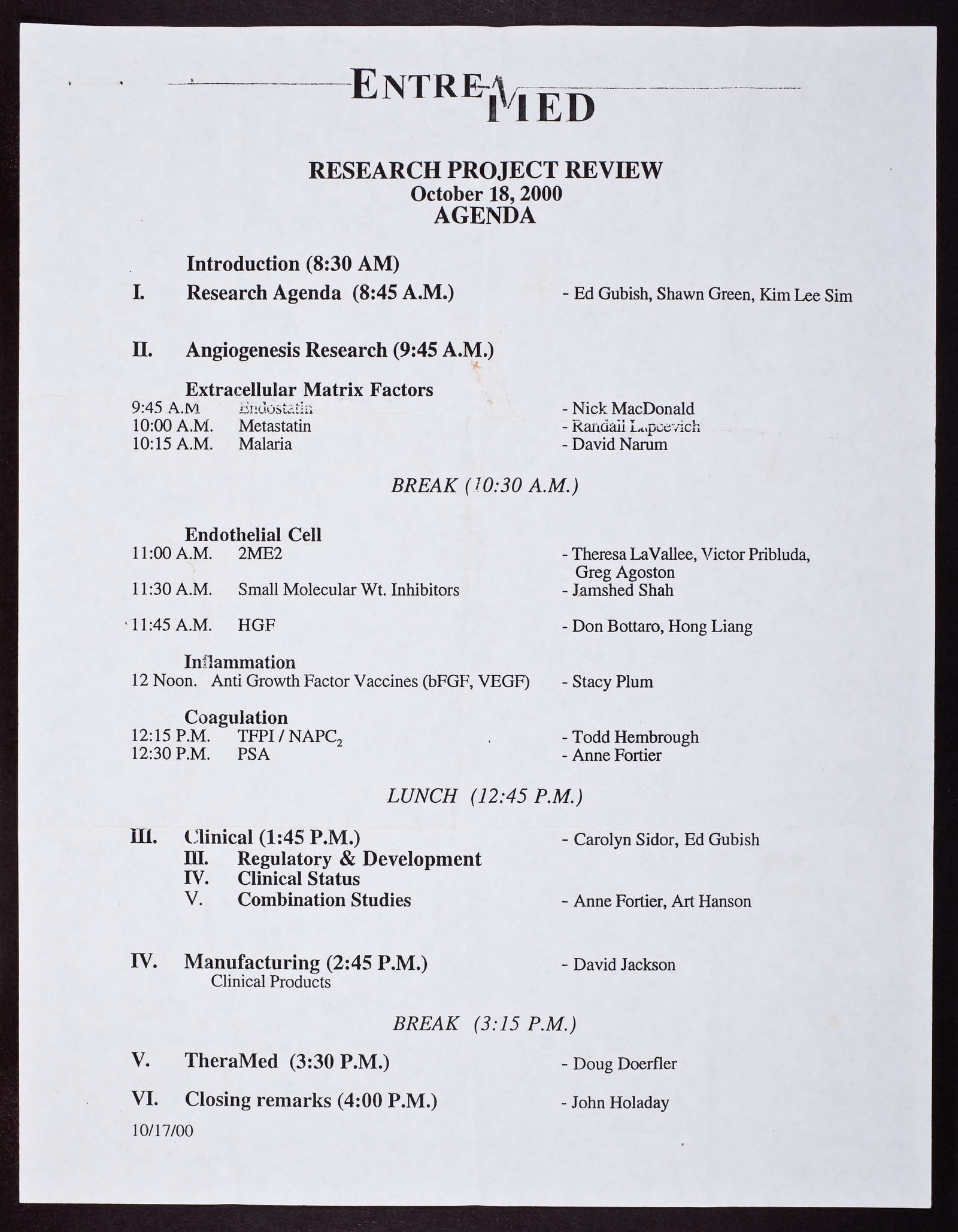 Item JDW/2/2/548: EntreMed (1999-2001)