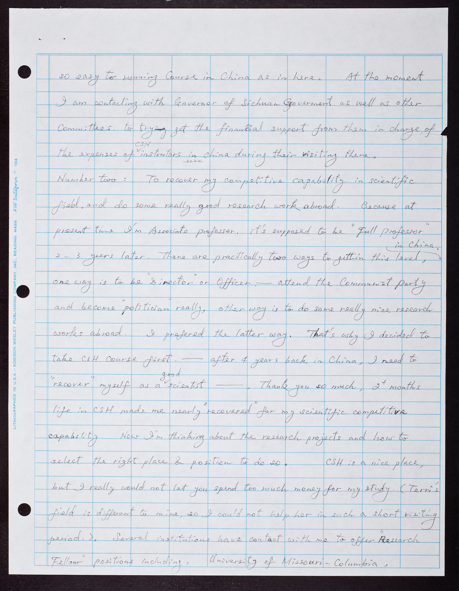 Handwritten letter from Fu Xiao Chang to James D. Watson