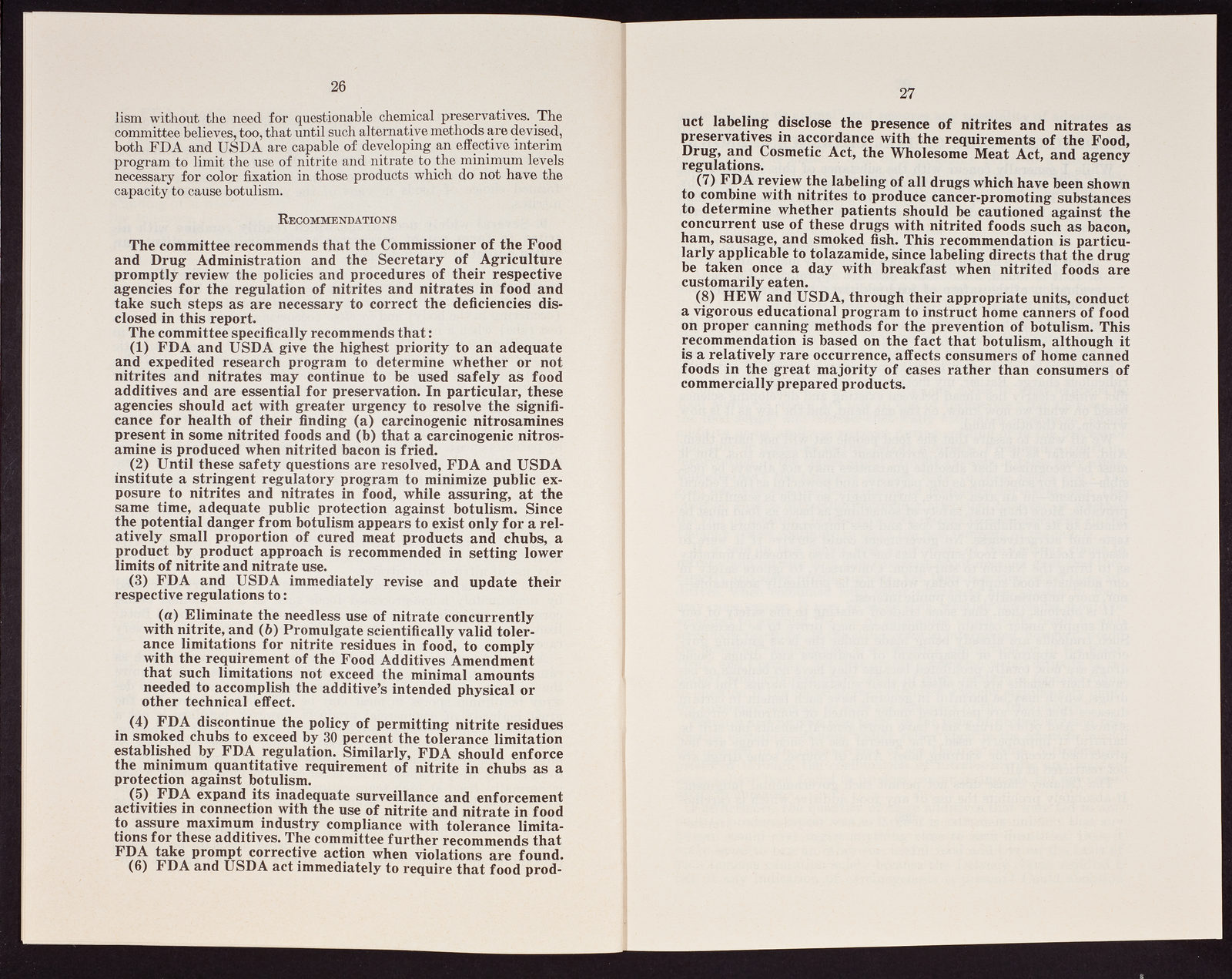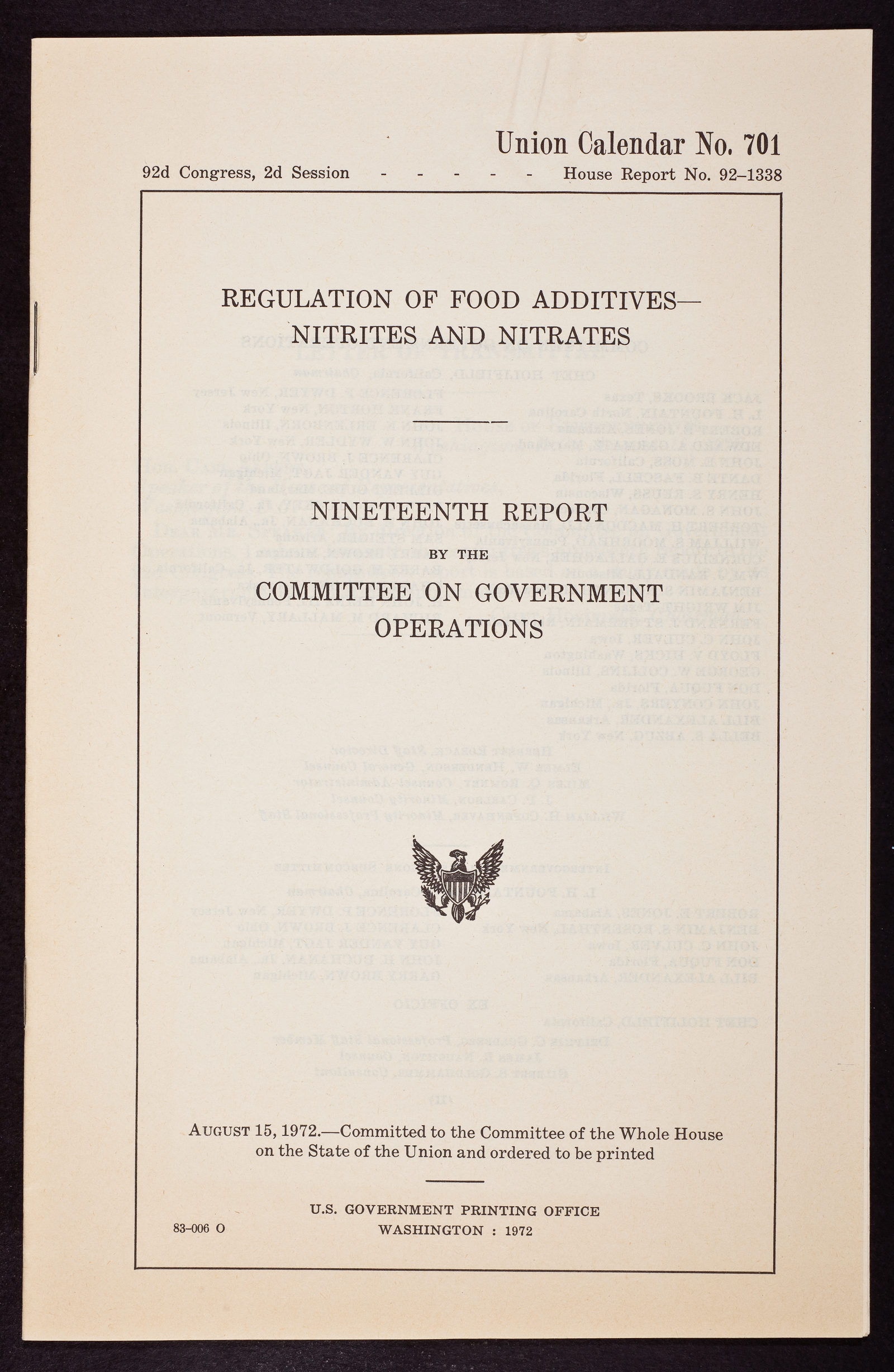 "Regulation of Food Additivies Nitrites and Nitrates" Nineteenth report by the Committee on Government Operations