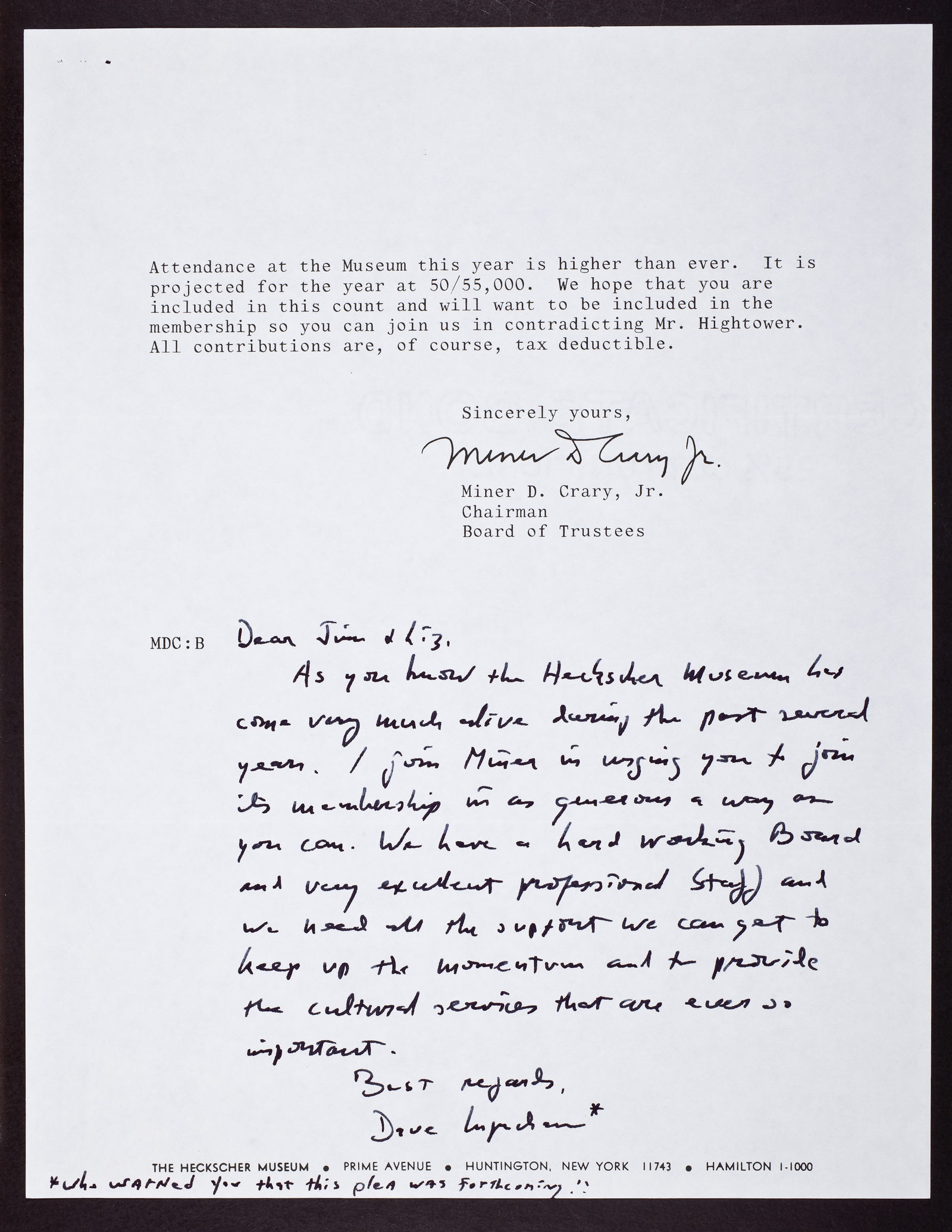 Letter from Miner D. Crary, Jr. to James D. Watson