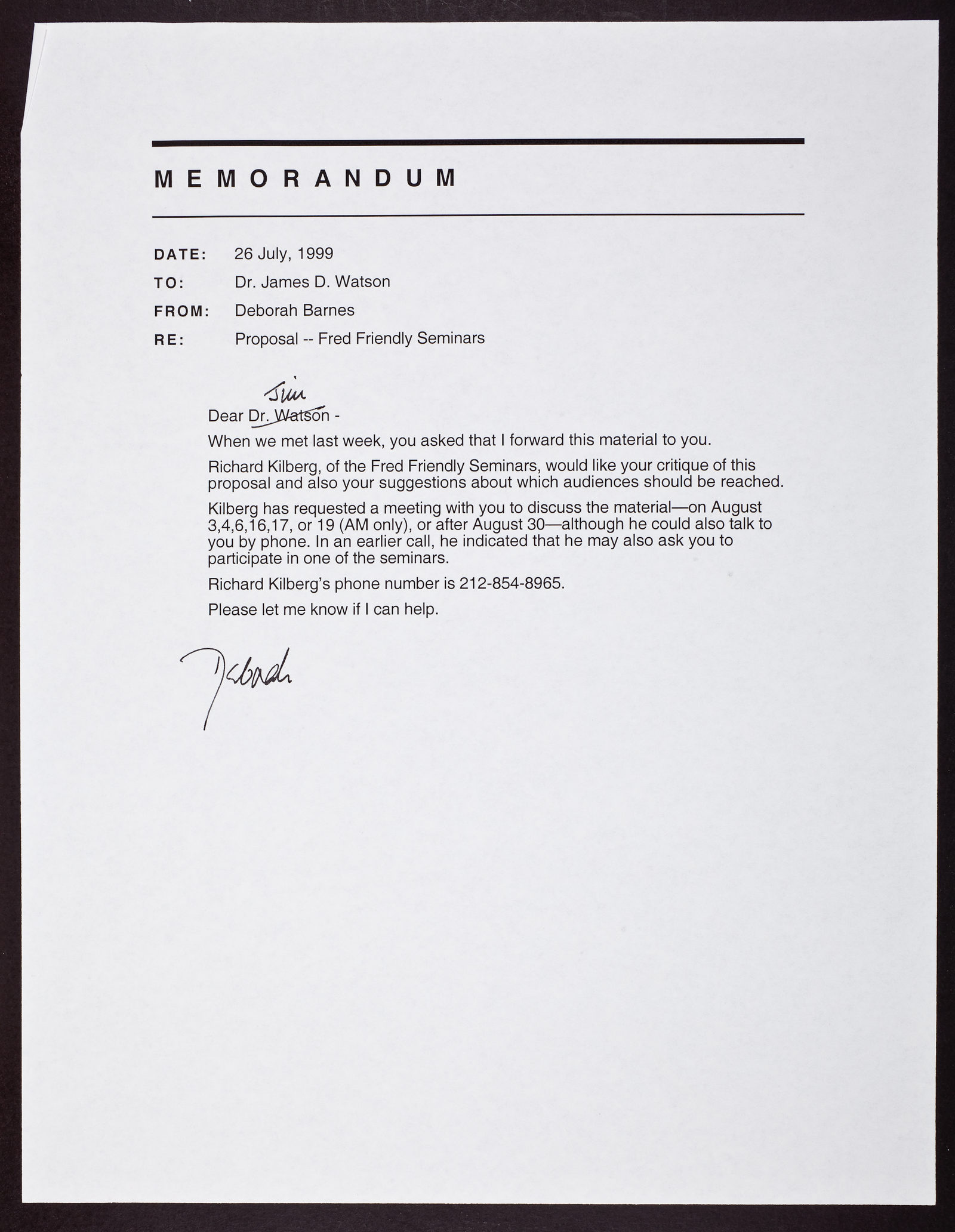 Item JDW/2/2/985: Kilberg, Richard (Fred Friendly Seminars) (1999-2002)